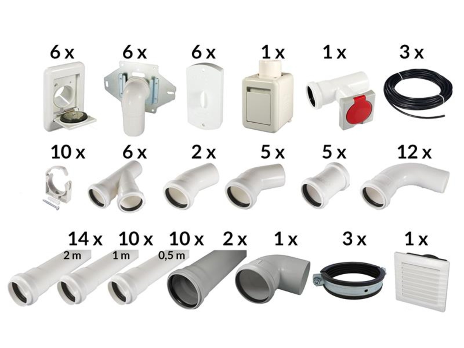 - 1 x Abluftrohrbogen 87°
