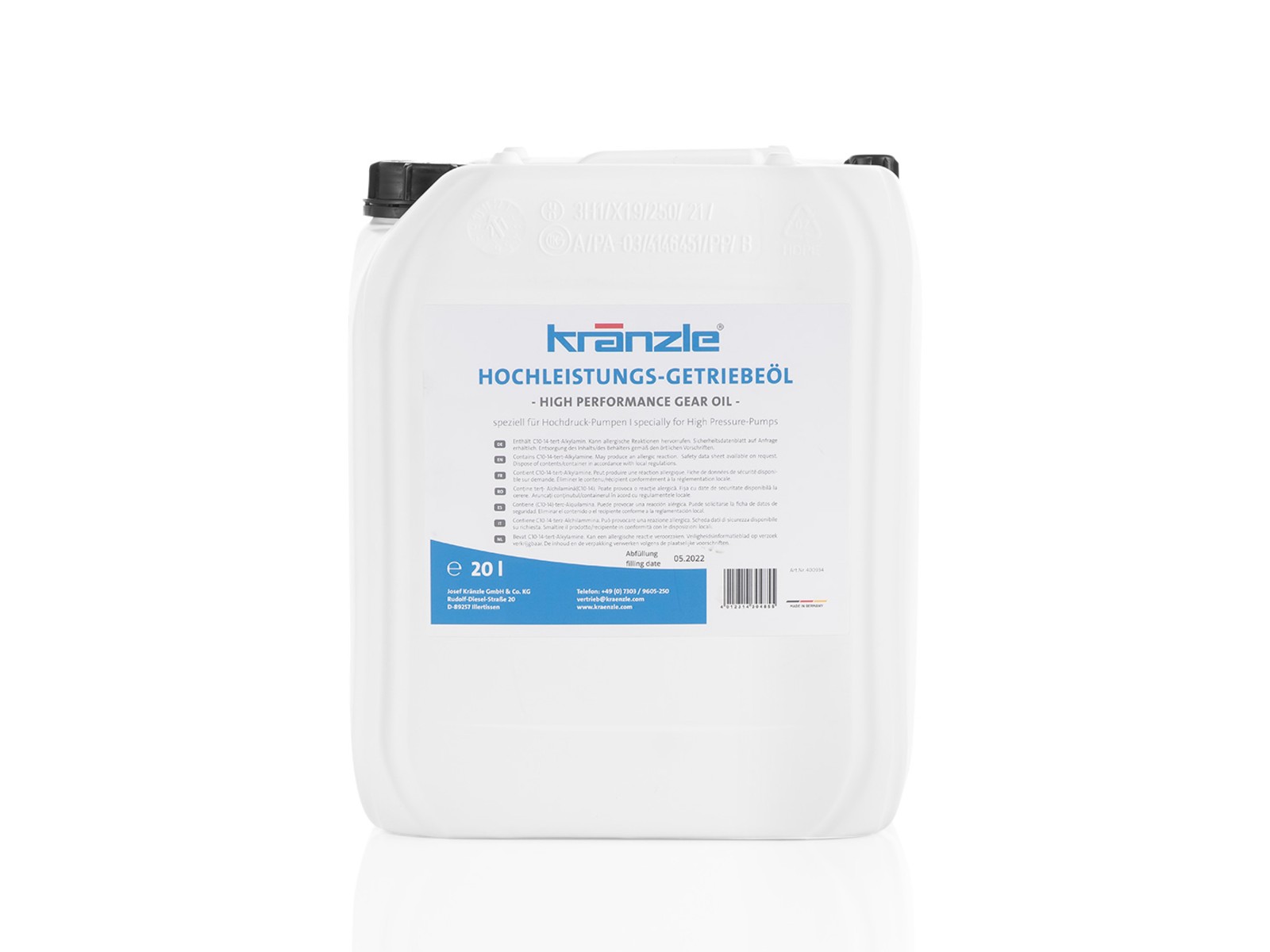 Der erste Ölwechsel muss nach ca. 50 Betriebsstunden erfolgen. Das Kränzle Öl für Hochdruckreiniger ist speziell für Hochdruck-Pumpen