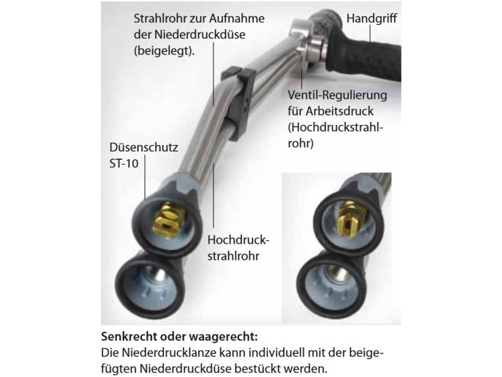 Inklusive Niederdruckdüse und Düsenschutz ST-10