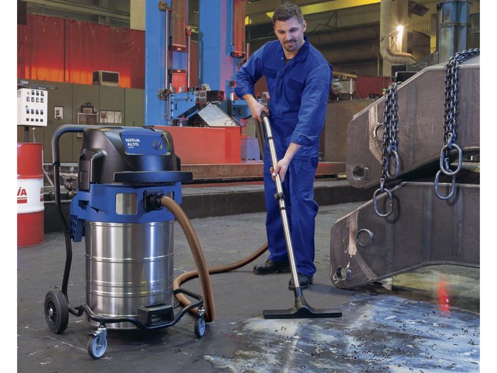 Im Produktionsbereich oder im Lager muss Schmutz schnell und zuverlässig beseitigt werden. Manche Verschmutzungen können sich zu gefährlichen und kostspieligen Gefahren entwickeln. Mit dem kraftvollen Nass-/Trockensauger ATTIX 961-01 kann täglich unter härtesten Bedingungen rasch und zuverlässig gereinigt werden.