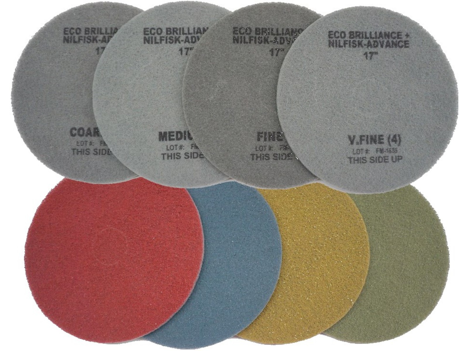 - Pad Grün (Schritt 4): Ein Pad zur täglichen Anwendung, das Schmutz und Kratzer entfernt und eine glänzende Oberfläche erzeugt. Trockenpolieren mit einer High-Speed Maschine für eine hochglänzende Oberfläche, abhängig von der Bodenart.