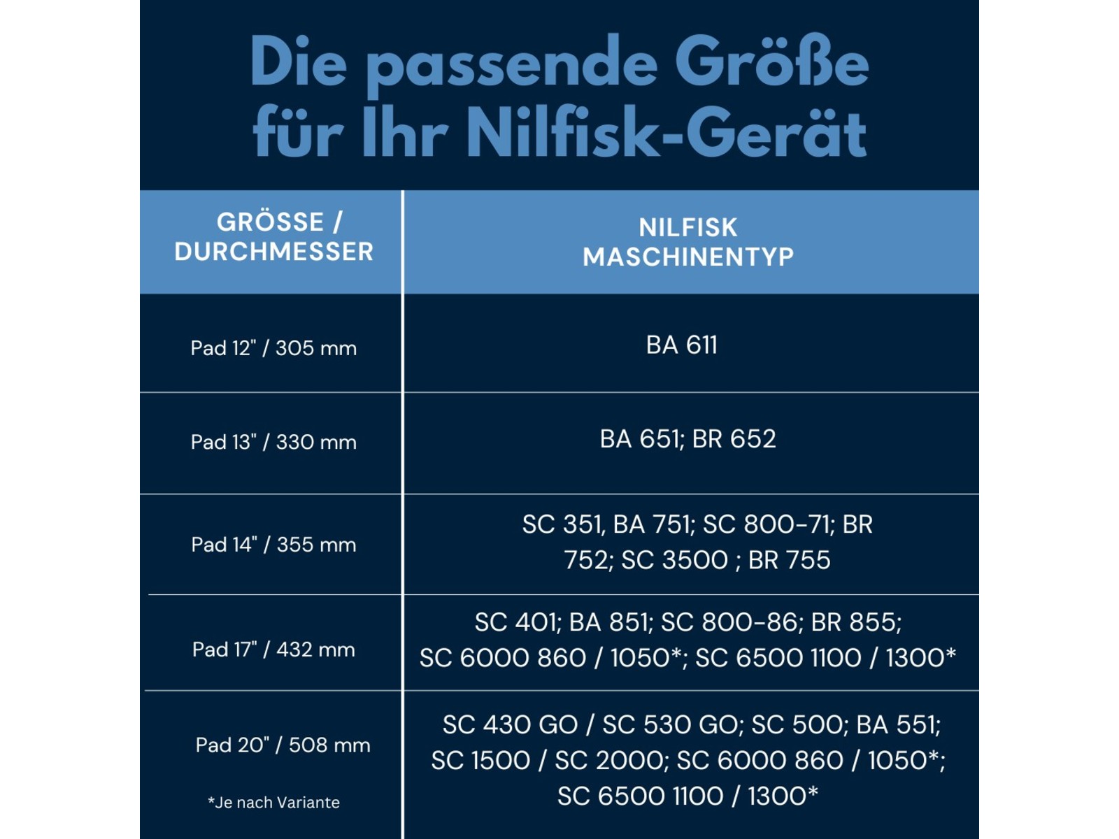 | Größe | Nilfisk Maschinentypen |